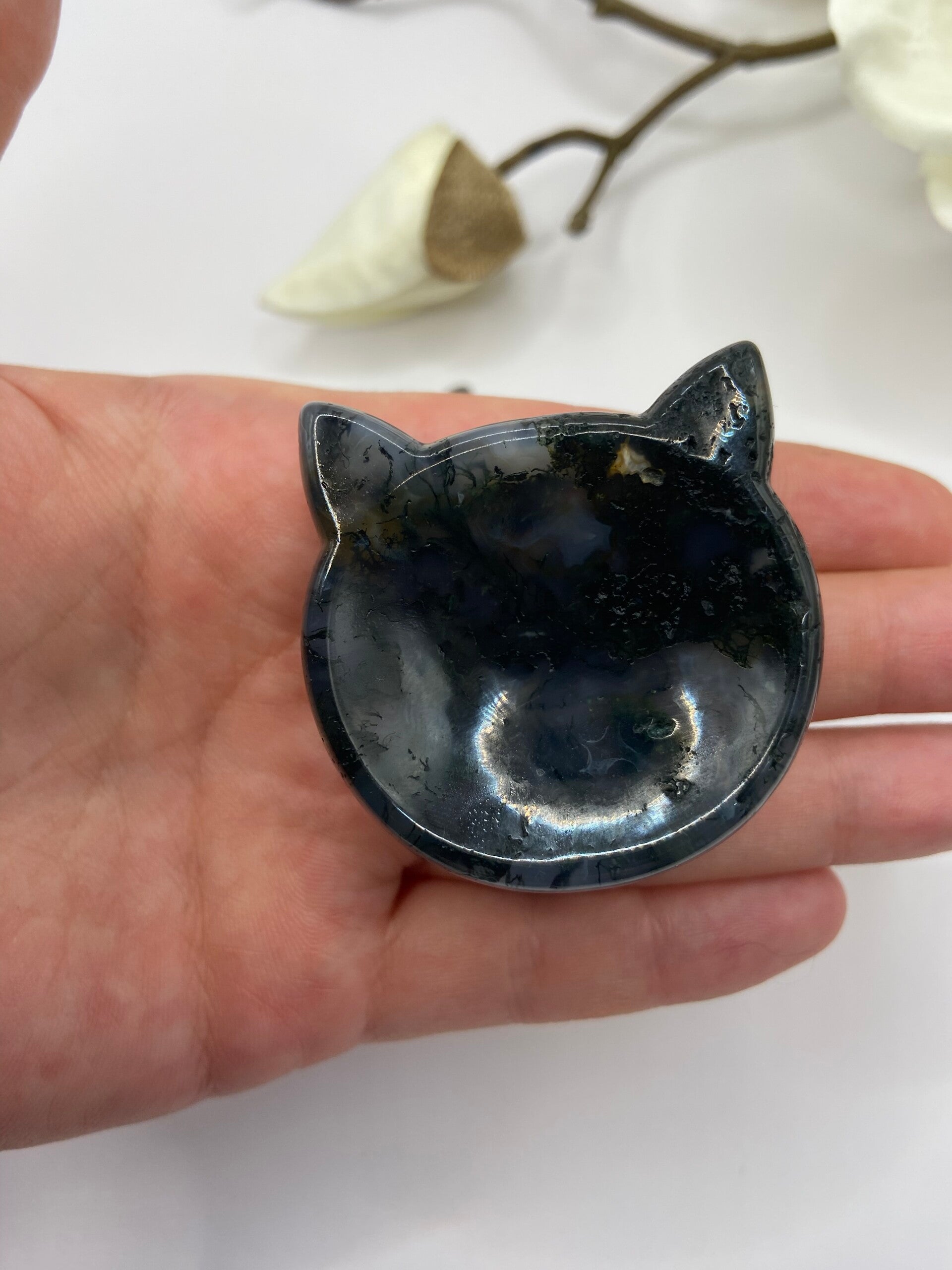 Kleine Moosachat Schälchen in Katzen Form