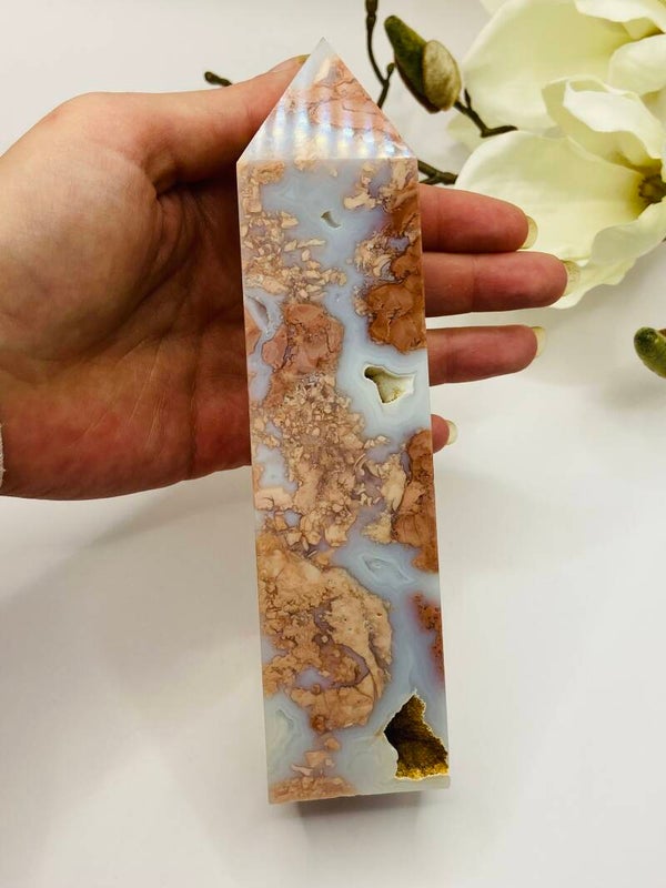 Wunderschöner Druzy Pinker Achat Obelisk đ„°